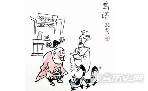 县令听说道士有这种神奇的本领,便把他招来,敬为上宾。当时有一群鸭子路过,于是县令就问他鸭子说什么,道士回答说:“大人的妻妾,一定在拌嘴。鸭子说: ‘算了,算了,偏向她,偏向她!’。”县令听了很敬服,原来县令的大小老婆在家吵架,县令就是因为被吵得不耐烦才出门的。于是县令便将道士留在衙门里居住,以优厚之礼待他,时常让他辨别鸟禽在说些什么。道士每次都说得出奇地准确。然而这个道士既质朴又耿直,常常无所顾忌。这个县令很贪婪,地方上供给衙门的一切东西,他都折变为钱塞进了自己的腰包。