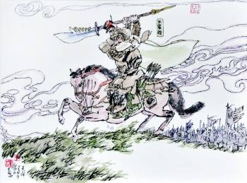大司马王霁宇是河北新城人,他镇守北方边境时,曾经让铁匠特意打了一把大杆刀,刀面宽一尺,重千斤。他每次巡视边防的时候,就让四个大力士抬着。每到一处,他总是让人把大杆刀丢在地上,故意让北边敌兵来拿。敌兵发现大杆刀,打算扛回去,可就是拚尽全力,刀还是一动不动。王司马又暗里用桐木照大杆刀的样子另做了一把,宽窄大小一模一样,外面贴上银纸,经常拿着这把假刀在马上挥舞。北边敌兵看了,无不震惊他力大无穷。王司马还在边关外插上芦苇作边界,芦苇墙横斜几十里,像篱笆一样,他还扬言说:“这就是我的长城。”