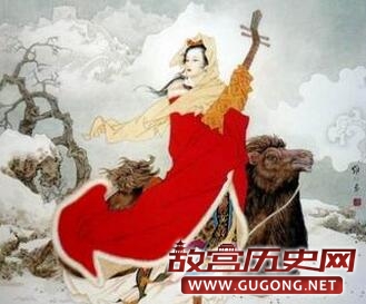 到了第二天,元帝特意在金銮殿上,设席宴请呼韩邪。酒至半酣,便命可将公主召出,以便与呼韩邪单于同赴客邸完婚。只见一群宫女拥出一位美人,袅袅婷婷地轻移莲步,走近御座之前辞行。元帝不瞧犹可,瞧了一眼,直把他惊得魂飞天外。原来此人真是一位绝代佳人。但见她云鬟拥翠,娇如杨柳迎风;粉颊喷红,艳似荷花映日;两道黛眉,浅颦微蹙,似乎有含着嗔怨的模样,仿如空谷幽兰,直令后宫粉黛失颜色,这就是王昭君!