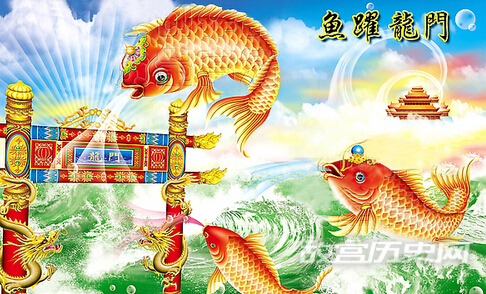 鲤鱼跳龙门是中国古代汉族传说故事,传说中黄河鲤鱼跳过龙门,就会变化成龙。比喻中举、升官等飞黄腾达之事。也比喻逆流前进,奋发向上。