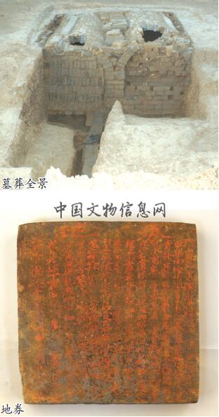 东室东壁中部用侧砖砌成一个高0.32、宽0.32、进深0.1 米的壁龛,龛内未放置随葬品。西室西壁中部用侧砖砌成一个高0.32、宽0.32、进深0.08 米的壁龛,内置一方朱书地券,有字一面朝向墓壁。