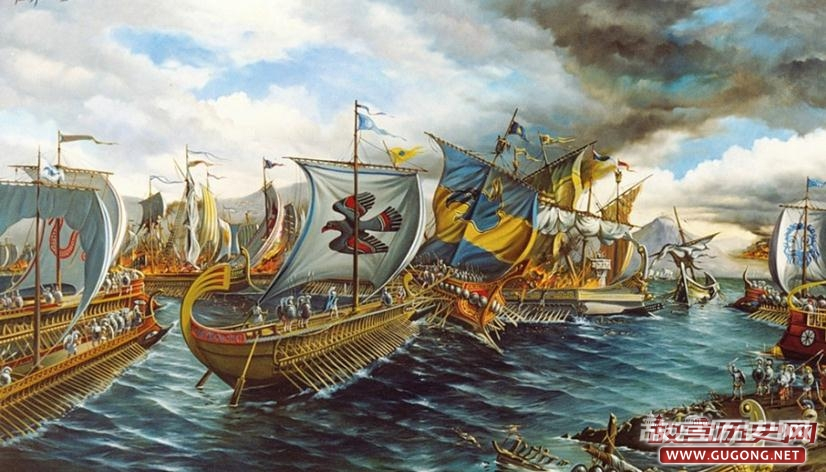 希腊军队里的士兵都不是被强征来作战的,他们为了保卫自己的家乡和亲人都具有赴死拚搏的精神。不仅如此,事实证明他们还具有良好的战术、良好作战性能的舰船和非常熟练的操船技巧,这一切保证了他们作战的胜利。他们的作战舰只是长而低矮的三层桨座的桨帆战船,在甲板上载有大约40名陆战士兵。但是这些战船的最主要的武器是船艏水线下用青铜包裹的撞角。战时,每艘战船上有150名桨手,分坐在三层甲板上划动长桨推动战船前进,其速度可以超过7节。这个速度给予战船的撞角以巨大的冲撞力。