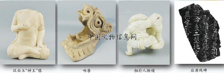 在七号房址廊前灰坑中出土金刚经残碑,在六号与八号房址之间出土大量残碑,其上文字有“迦殿”“造天王堂”“作头”等很多内容。另外,在二号殿址西侧出土有“……善之祥兼固……即隋之晋阳宫……特命良工塑北方……雄异也武皇……”的残碑。由这些碑刻内容可推断此建筑为寺庙建筑,建筑内可能有天王堂、释迦殿等。另据“武皇”可以判断该碑所记内容为后唐追忆前朝之事。建筑基址周围出土有经幢残段、精致的石雕建筑构件、日用瓷器、吻兽以及大量砖瓦等。通过对出土遗迹及遗物的分析,判断该寺庙建筑为大型寺庙建筑的一部分,修建年代为唐,可能在唐武宗时期受到破坏,五代后唐重新塑像或修葺,最终毁灭于宋初。