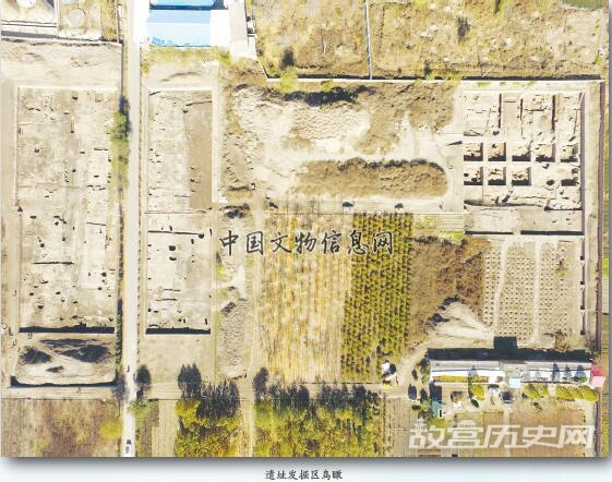 在西组建筑以东100 米,发掘了东组建筑。为了彻底了解该区域内不同时期堆积,选择性对部分探方发掘至生土。整个东组建筑基址分三期。最早期建筑遗迹时代为汉朝,主要有一些房址和水井。出土四神砖、方格菱形方砖、云纹瓦当、绳纹面布纹里板瓦和筒瓦、绳纹陶罐以及大型石质建筑构件等。第二期建筑遗迹叠压在早期建筑遗迹之上,时代为魏晋十六国,发现有大型窖穴及房址等遗迹。出土器物有绳纹板瓦、绳纹筒瓦、云纹瓦当、“富贵”文字纹瓦当、蓝纹板瓦、“六年”文字板瓦和一些陶器等。第三期建筑始建于东魏,经北齐、隋,最后废弃于唐。建筑基址的夯土范围遍布整个发掘区,采用一种大面积“满堂红”地基处理方式,夯筑方法为平夯,与“营造法式”灰土和碎砖瓦交替夯筑方法一致。地基处理完成后,在承重墙的地方,用条形夯加固。立柱的地方再置磉墩和柱础石。柱础石表面素平,也有较少的覆盆状。该建筑基址应是一个由四周房屋围合而成的院落,院中排水渠曲折回绕,水井修筑考究,础石整齐划一。出土有青掍板瓦、青掍筒瓦、青掍方砖、“兴和”与“天保”铭记的空心砖、脊头瓦、莲花纹瓦当、汉白玉“神王”造像、青瓷碗、红陶碗、灰陶罐以及“五铢”钱等。