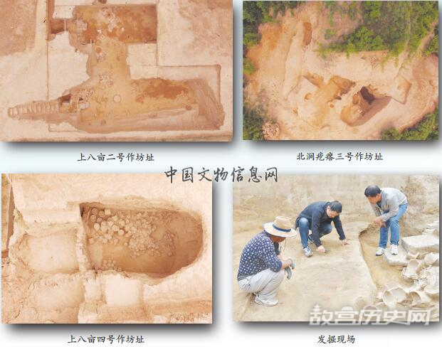 制瓷作坊多为窑洞式,作坊底面遗存保存较完整,有澄泥池、沾浆缸、灶址、石磨盘、石臼等遗迹、遗物,涵盖原料制备、制坯、晾坯等环节,比较全面地反映了该窑址的制瓷过程;瓷窑炉除Y1 保存相对较好外,其余三座窑炉仅残存窑床部分,均由通风口、扇形火膛、窑床及双烟室组成,不同之处在于通风口的位置、窑床及烟室的结构及大小等,窑炉结构与形制上的差异可能与其烧造的产品种类有关;发现的水井J1 为一处废弃的水井,井内堆积厚近8.7 米,可分四层,每层厚度在1.1~4.5 米不等,其中第②、④层为倾倒的窑炉废渣层,内含大量细白瓷残片及垫圈、垫片、匣钵等窑具,为研究其瓷器产品的类型学演变提供了丰富的比对标本。