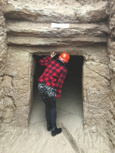 这座崖墓长12米,构造较为完整,有一段2米多长的墓道和一段1米多长的甬道。戴上安全帽,低头躬身,进入甬道后,便看到高约2.48米的墓室了。黑黢黢的墓室分为前后室,穴顶多处有坍塌痕迹。据考古工作人员介绍,这是自然原因造成的。
