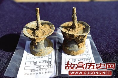 孙凯介绍,虽然盗掘严重,但考古人员还是在周懿王墓内发现了炉、镜、盆、剪、盘、斗、箸、勺等少量铜质明器,还有一口铅质缸形“长明灯”。