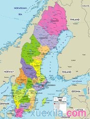 瑞典(Sweden),全称瑞典王国,是一个位于斯堪的纳维亚半岛的国家,北欧五国之一,首都为斯德哥尔摩。它西邻挪威,东北与芬兰接壤,西南濒临斯卡格拉克海峡和卡特加特海峡,东边为波罗的海与波的尼亚湾。瑞典与丹麦、德国、波兰、俄罗斯、立陶宛、拉脱维亚和爱沙尼亚隔海相望,海岸线长7624千米,总面积约45万平方公里,是北欧最大的国家。