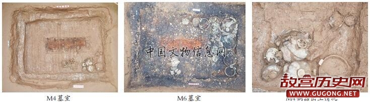 两墓墓葬形制为口大底小的竖穴土坑墓,平面呈长方形,东西向。M4 和M6 南北并列,M4 位于M6 南。