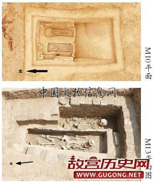 13 座墓葬中,有三座属于二次葬,除M3 有一带朱砂痕迹的方砖随葬外,其余均无随葬品,且三座二次葬的墓葬形制均不相同,建造考究,葬式各异。