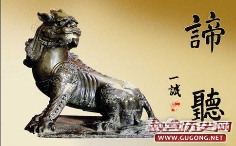 简言之,独角表公断力,如《论语》中孔子认为子路说一不二,“片言可以折狱”。龙身表吉祥,虎头表示智勇,犬耳表善听,狮尾表有耐性,麒麟足表四平八稳,以善为宝。
