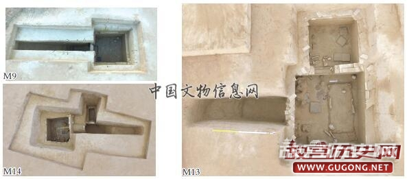 墓室在建造时,大多采用顺砖平置错缝砌筑,少数墓室在数层顺砖中隔一层侧立丁砖。绝大多数方形主室的北部都有砖砌棺床,除了M9和M19 之外,其余墓葬棺床之外的地面上不铺砖。M14 及船形墓的地面通体铺砖,而没有另外铺设棺床。M13 残存长方形木棺轮廓,其余墓葬虽未见棺痕,但大多出有棺钉。这批墓葬以合葬墓为主,其中单人葬4 例、双人葬5 例、3 人葬2例、4 人葬2 例。葬式皆为仰身直肢,船形墓的出土人骨的头向朝南,其余墓葬的头骨皆朝西。未经盗扰的墓葬中存在口含钱、手握钱的丧葬习俗,少数墓葬有放置家畜肢体的殉牲现象。