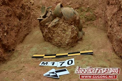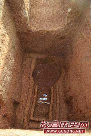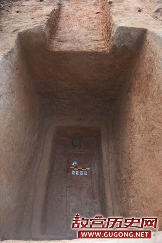 M170位于第Ⅰ发掘区,墓口长3.24m、宽1.88m,墓底长3.1m、宽1.52m。与其他宽坑墓不同,M170东墓壁下二层台为生土二层台,其余三壁皆为熟土二层台。随葬器物有2鼎、2敦和2壶,从随葬器物摆放形态看,下葬时器物应分为两层叠放。(见图二十至二十一)