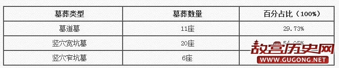 本次发掘共发现战国墓葬37座,其中第Ⅰ发掘区14座、第Ⅱ发掘区3座、第Ⅲ发掘区20座。上述20座墓葬皆为土坑墓,根据墓坑形态,此37座墓葬可以分为墓道墓(A型)和竖穴墓(B型),其中竖穴墓根据墓葬长宽比又可分为宽坑墓(Ba型)与窄坑墓(Bb型)。各类墓葬数量占比可见下表。