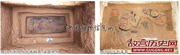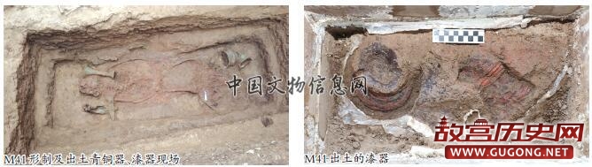 墓葬 在这一区域内共发现商代晚期墓葬(殷墟时期) 40 余座,出土青铜礼器的墓葬5座。其中M21 和M41 为中小型商代贵族墓葬,出土了一批青铜礼器和漆器,具有代表性。