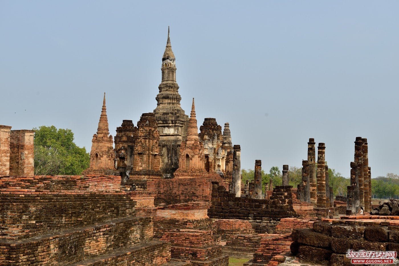 素可泰(Sukhothai) 是泰国最初建国的素可泰王朝的首都所在地,素可泰王朝自1238年兴起,至1420年没落。 素可泰王朝的第三位国王 – 兰甘杏国王(King Ramkhamhaeng)是一位很有作为的君主。他在位时通过改良高棉文字创造了泰国文字,并创造了有名的宋卡洛瓷器(Sangkhalok crockery)。素可泰位于曼谷北部350公里的地方,西部和北部为山林,东部和南部为平原地带。素可泰王朝的遗址零零星星的散布在山林和平原之间。