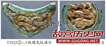10 件台沿螭首造型基本一致,长条柱形,柱头圆雕螭首,后部为长方形柱体,上有榫槽。通长1.2 米,螭首部长0.7 米。该类遗物在元中都和元大都都有发现,但材质为汉白玉,螭首吻部较短,上腭卷曲稍小,而开城安西王府出土台沿螭首吻部突出,上腭向上翻卷更加明显,雕刻技艺精湛,造型生动,加之材质硬、使用不久即埋入地下,保存状况好。