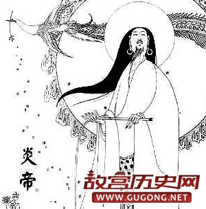 炎帝的夫人系赤水氏之女听沃,她与炎帝所生的男孩名叫炎居。炎居生节并,节并生戏器,戏器生火神祝融。祝融被谪降到长江流域,生下了怒触不周山的水神共工。共工的儿子术器生有异相,他的头顶平整如削;另外一个儿子叫后土,乃土地之神。后上生下时间神噎鸣,噎鸣有十二个孩子,他们是困敦(子年)、赤奋若(丑年)、摄提格(寅年)等十二太岁神。后土还有位孙儿,即逐日的夸父。