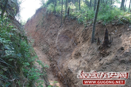 下菰城,位于湖州市南郊10多公里处云巢乡窑头村一个自北向南倾斜的山坡上,北靠和尚山,东南临东苕溪。现存内外两重城垣,平面不规则,近圆角三角形,内城位于外城的南侧中部,并利用外城南城墙中段作为内城南城墙。城墙保存基本完好,一般墙高在9米、上部宽5-6米、底部宽30米左右,城墙外有护城河,南城墙外较宽,近30米左右,东西两城墙的内、外城墙仅在南半边有保留,北半边情况不明。城址总面积约68万平方米,其中内城面积约18万平方米。内城南低北高,南边低洼处约占面积三分之一,北边为高台地,低地与高地落差在1米左右(图2)。