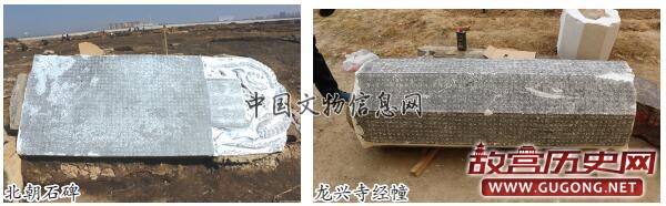 遗址内出土的一通刻于北魏永熙三年的功德碑中提到“定国寺主、寺都维那”,疑定国寺即北魏末年的遗址所名,这一时期的遗物主要有大魏造像题记、北齐河清三年造像题记、乾明年间造像台座等。
