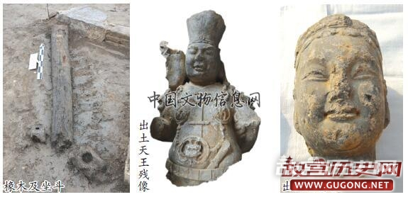 行宫范围内出土文物种类丰富,制作精美,主要有功德碑、石佛像、石佛像台座、陶瓦当、陶建筑构件、木制品、瓷片、铜钱等遗物,三块功德碑以记载碑主生平为主,从碑文看碑主均担任过济州刺史一职;出土钱币主要有五铢、常平五铢、永安五铢、开元通宝、波斯萨珊银币等;出土瓷器窑口主要为定窑、邢窑等,器型以碗、罐为主,部分器物底部有墨书;出土木制品主要为椽木、坐斗、木梳等,此外香火坛中还出土有疑未烧透的圆形方孔纸钱。从发掘情况初步判断行宫内建筑大量重复使用前代物品,部分房址可能有改建现象。