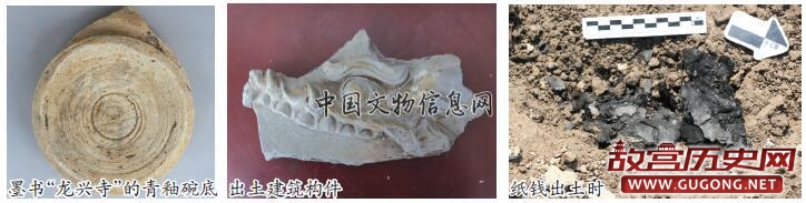 唐代龙兴寺虽已不存,但行宫范围内出土较多与龙兴寺有关的遗物,如开元二十五年龙兴寺佛顶尊胜陀罗尼经幢、青釉碗底墨书“龙兴寺”,唐开元九年造像题记、景云二年造像题记、线刻人物供养等。龙兴寺至少应建立于初唐,可能毁于盛唐之后。