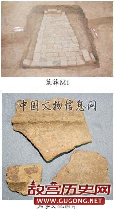 编号M1 墓葬开口于2 层下,墓穴呈长方形,仅剩墓底铺砖,墓葬残长2.6、宽1.9 米,深0.3 米。墓底铺砖呈西宽东窄,在墓底铺砖中部有皇宋通宝、崇宁通宝等宋代铜钱。