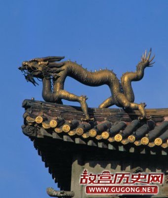 紫禁城中的龙,不仅飞腾于崇高庄严的殿堂上,在皇家大内的各处生活环境中,自服饰、家具、钟表、文房用具、杯盘器皿乃至仪仗兵甲等等各类器物,到处舞动着各式的龙纹。中国古代还有“龙生九子”的传说。据传龙生有九个孩子,禀性各异,嗜好不同,我们也能分别在紫禁城的大门、屋脊等建筑部位和香炉、编钟器物上找到他们可爱的身影。