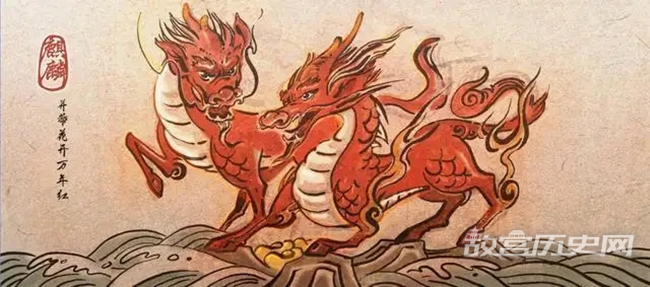据《瑞应图》记载:麒麟长着羊头,狼的蹄子,头顶是圆的,身上是彩色的,高大概2米左右。《说文解字·十》记载:麒麟身体像麝鹿,尾巴似龙尾状,还长着龙鳞和一对角。
