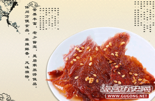 相传,唐代着名诗人元稹在通州(今四川达川一带)任司马时,一天到一家酒肆小酌。酒菜中的一种牛肉片,色泽红润油亮,十分悦目,味道麻辣鲜香,非常可口,吃进口酥脆而后自化无渣,食后回味无穷,使元稹赞叹不已。更使他惊奇的是,这牛肉片肉质特薄,呈半透明状,用筷子挟起来,在灯光下红色牛肉片上丝丝纹理会在墙壁上反映出清晰的红色影象来,极为有趣。他顿时想起当时京城里盛行的“灯影戏”(现通称皮影戏,其表演时用灯光把兽皮或纸板做成的人物剪影投射到幕布上),何其相似乃尔,兴致所至,当即唤之为“灯影牛肉”。于是达川的这种牛肉就以“灯影牛肉”之名盛传开来,成为四川的一种着名土特产。