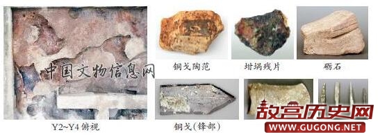 出土一批与铸造有关的遗物。范有陶质和石质两种,均为合范,截面呈半圆形,模腔有浇注形成的灰绿色玻璃质层,从模腔形状分析是用于铸造兵器和工具类器物。坩埚仅见残片,用粘土烧制而成,夹有砂粒,内壁有铜液残留。出土较多铜渣、粘有铜液的炉渣、铜器,未见铜矿石,铜器有兵器、工具两类,器形有戈、刀、削、镞、斧、锛、镰等。