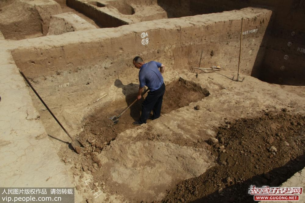 目前考古人员正在对古墓下方殷商时期土层进行挖掘,距今3000年左右,发现有房基、道路、灰坑、墓葬,显示出在商代时期大司空这片区域,应该是一个非常重要的聚落地点。(刘肖坤/人民图片)