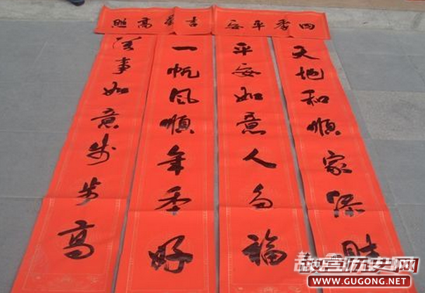 到了宋代,在桃木板上写对联,已经相当普遍了。王安石的《元日》诗中写的“爆竹声中一岁除,春风送暖入屠苏。千门万户瞳瞳日,总把新桃换旧符”就反映了每到除夕之日,家家户户挂桃符的盛况。同时,随着门神的出现和用象征喜气吉祥的红纸来书写桃符,以往的桃符所肩负的驱邪避灾的使命逐渐转移给门神,而桃符的内容则演化成用来表达人们祈求来年福运降临和五谷丰登的美好心愿。