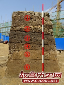 第①层:灰色夹杂黄色的砂质粘,厚55-80厘米,致密,全方分布,包含有砖瓦残片、青花瓷片、长沙窑瓷片、铜钱等遗物,为近现代建筑和生活堆积层。该层下有较多明清时期墙基、柱础石、房基等房屋建筑遗存。