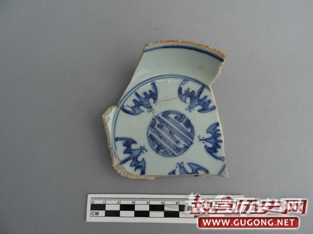 图十四、TN15E01①出土五蝠捧寿纹青花碟残件