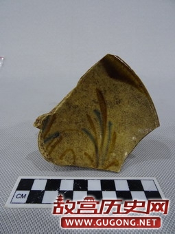 图六、H10③出土褐斑彩绘花草纹碗残件