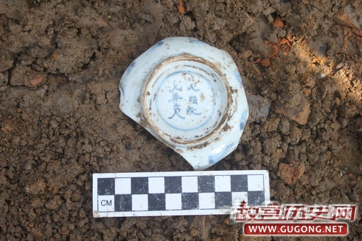 明清时期遗物主要出土于发掘区的第①、②、③层,采集标本主要为青花瓷碗、杯、碟等器物残片,青花蓝彩或淡雅或浓烈,画工或严谨或草率,做工或精细或粗糙,总体流畅自然,具有景德镇明清民窑青花风格,装饰主题有龙凤、鸟兽、花草、吉祥图案、款识等,其中发现较多“大明成化”款的青花瓷残件,多为明晚、清初的伪托款。(图十四-十五)