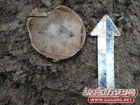 第⑤层:浅灰色沙质粘土,较致密,平均厚约50厘米,出土有褐斑彩绘鸟纹碗、瓷塑龟、瓷塑鸟、砚台、青釉露胎碟等长沙窑瓷器残件。