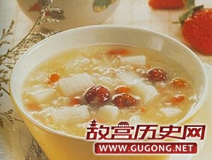 腊八粥在宋人笔记中亦多有记载。吴自牧《梦梁录》卷六云:“八日、寺院谓之‘腊八’,大刹寺等具设五味粥,名曰‘腊八粥’。”而在纪念佛祖成道这一天,寺院还互赠粥品,广结善缘,又称为“佛粥”,对此诗人苏东坡曾有“今朝佛粥更相馈”的诗句。《燕都游贤志》中还有“十二月八日赐百官粥,民间亦作腊八粥,以米果杂成之,品多者为胜”的记载。可见,腊八粥起初是佛门节令不可缺少的祭祀食品,后来从佛教寺院逐渐发展到朝廷、官府中,最后流传到民间。相传“黄帝始烹谷为粥”,《礼记》也有“食粥天下之达礼也”的记载。《太公金匮》里还记载了武王伐纣时,洛邑雪深丈余,姜太公使人献粥以御寒的故事。看来,粥的起源在商周之前。到了汉唐以后,随着农业的发展,农作物品种逐渐增多,粥也得到了相应的发展。唐时除有米粥、栗粥、豆粥、麦粥外,还有胡麻粥、长生粥和防风粥。而腊八粥这一古老的斋食,正是综合各种粥的长处,随着佛教的流传,逐渐发展起来的。