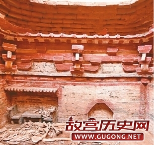 据介绍,该墓葬为一仿木结构彩绘砖雕墓,由墓道、墓门、封门和墓室等四部分组成,墓道南向。墓道为长方形竖井式,斜坡底;墓门券顶,条砖封门;墓室为砖砌,平面呈方形,叠涩顶,方砖铺地。墓室装饰砖雕仿木结构,包括倚柱、阑额、普拍枋、斗拱、橑檐枋、檐椽、望板、滴水等建筑构件,四壁还用砖雕砌有假门、桌椅、灯檠等。室内壁满抹白灰,并施红、黑、黄彩,其中普拍枋、阑额、拱眼、墓门彩绘有花草纹、波折纹和雷纹,假门两侧还用黑彩绘有人物。根据墓葬形制、装饰风格及出土器物特征,专家初步推测墓葬年代在金元时期。