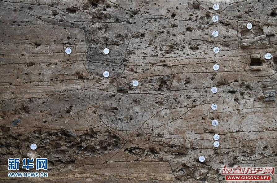 河南开封地处黄河南岸,历次黄河水患使开封从战国时代到清代2000多年间的6座古城池淤埋于地面之下。经国家文物局批准,开封市2012年启动“城摞城”新郑门遗址项目,进行保护性考古发掘。截至目前,考古发掘面积达2000平方米,基本理清了城门结构及城墙的保存状态,发现有宋代城门和城墙遗址、宋代至清代层层叠压的“路摞路”现象,以及清代民居院落“夹路而居”的村落场景,元代房屋院墙等文物遗存,“城摞城”奇观初现。(新华社记者朱祥摄)