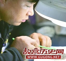研究人员在对筛选水洗探方土样后残留的微小物质进行挑选。李鹏摄/光明图片