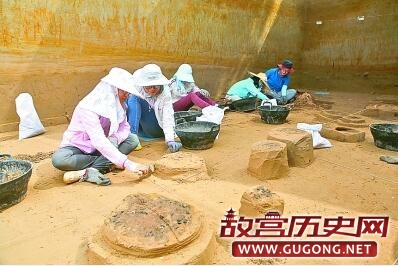 考古人员在发掘出土临时性建筑遗址。李鹏摄/光明图片