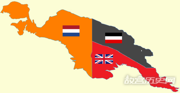 与此同时,新几内亚岛附近的爪哇岛也引起西方人注意,16世纪初,葡萄牙商人率先登陆,发现了这里丰富的香料。随着葡萄牙让位于“海上马车夫”荷兰,荷兰的东印度公司开始探索新几内亚岛。然而,雨林和沼泽限制了荷兰人的探索步伐,在很长一段时间内,他们只能在沿海地区活动。1884年,英国和德国忽略荷兰的存在,相继入侵新几内亚岛,将东半部分及其附属岛屿占为己有。而“海上马车夫”经历了几次欧洲海战后,已经进入衰退时期。面对英德的来势汹汹,荷兰只能无奈地放弃东半部分,并迅速将西半部分纳入统治范围。自此,新几内亚岛三国分立的局面正式形成。