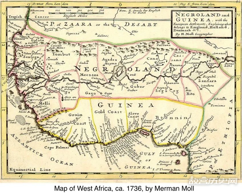 1736年的西非地图,可以看出,西非海岸整片都被称作Guinea