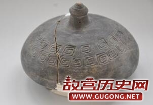 商代的遗物也非常丰富,主要分陶器、石器两大类,另外还发现有小块的残铜片以及经浮选出的植物种子及根茎。陶器的陶质、陶色及纹饰等尚未作专门的统计,但从初步检视的印象来看,主要有泥质黑衣红陶、泥质黑陶、泥质灰陶、夹砂灰褐陶、夹砂红褐陶等,另有一些泥质橙黄陶、泥质红陶、夹砂黑陶等,纹饰除常见的弦纹、绳纹、横人字形刻划纹、“S”形刻划纹、圆形镂孔、花边、附加堆纹等之外,还有一类明显具有仿铜器风格的纹饰尤其引人注目,比如圆形云雷纹、方形云雷纹(图十三)、菱形云雷纹、扉楞、乳钉以及“十字形”镂孔等,这些仿铜器风格的纹饰具有近似中原商文化的特征,但它们所装饰的器类却大都是地方性的,或可视为本地居民对于商文化的模仿和创新。与纹饰所表现的现象相一致,陶器的器类方面也体现出类似的特点,一方面遗址中大量存在的是以高领罐、宽凹沿釜、窄沿腹、釜形鼎、折盘豆、竹节柄豆、花边圈足碗、器盖等为代表的一类具有地方风格的陶器(图十四),另一方面以鬲、簋、假腹豆等为代表的具有商文化风格的陶器在遗址中也时有发现(图十五)。石器的数量也比较多,主要器类有锛、斧、凿等。残铜片仅发现一片,难辨器形。植物遗存也比较丰富,但种类还有待于进一步分析鉴定。