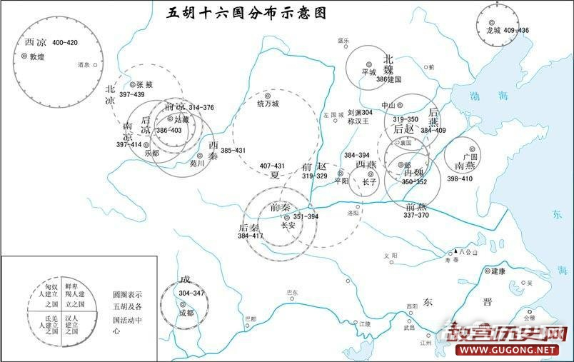 五胡十六国时期风云突变,城头变幻大王旗,今天你当王明天我当王,因此并没有一个囊括整个五胡十六国时期的地图,其形式地图是一直改变着的。