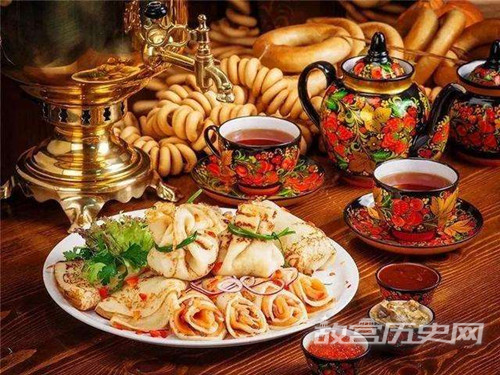 讲究小吃:俄式小吃是指各种冷菜,其特点是生鲜、味酸咸,如鱼子酱、酸黄瓜、冷酸鱼等。