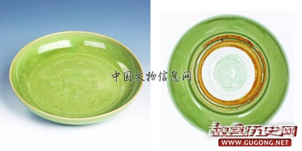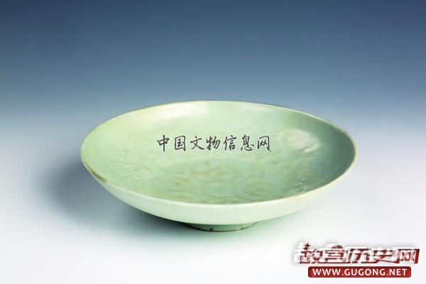 青釉印花杂宝纹盘:完整器,元龙泉窑产,出土于西发掘区河道(HD1)内。口径20.8厘米,底径12.5厘米,高4.6厘米。敞口,圆唇,浅弧腹,圈足;内底印杂宝纹;灰白色胎,通体施青釉,底足部有一圈较规整的刮釉,足底心有一白釉圈,质感细腻。