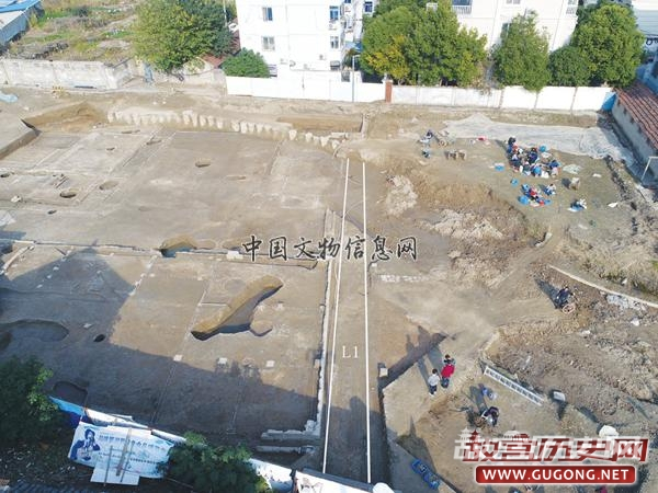 路(L1):位于东发掘区大型院落南墙之外,向东延伸进入现代居民楼房下,向西延伸未拆迁民居下。已发掘长度约45米,其宽约1.6米,其方向约55°,略呈东北—西南走向。